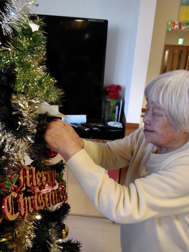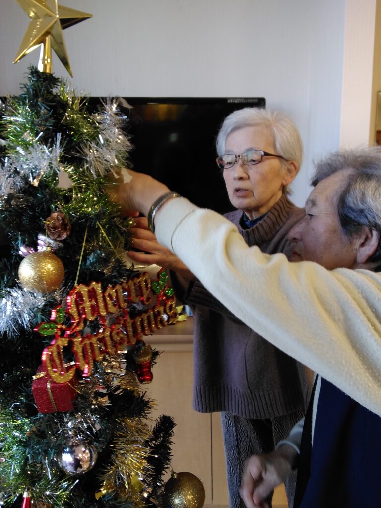 12月初めにツリーの飾りつけを行い、飾りつけの完成したツリーの隣で写真撮影を行いました。